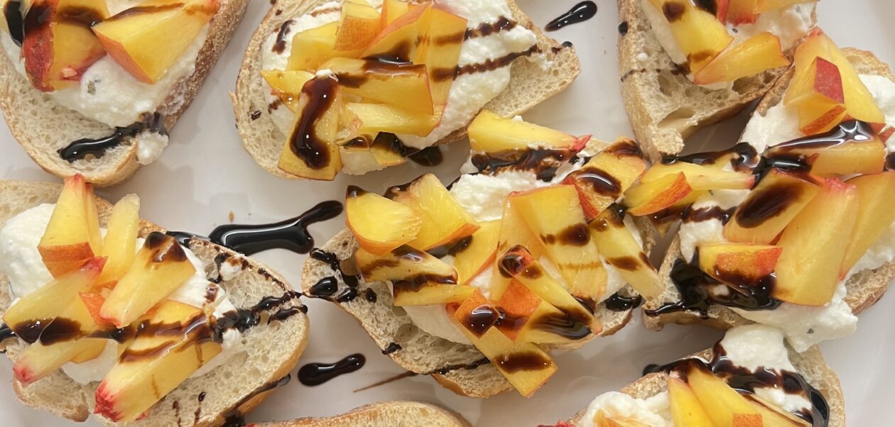 Peaches have always been one of my favorite summer fruits, I wait all year for that perfect, juicy sweetness! So when I came across this idea for Peach Bruschetta with Whipped Ricotta and Hot Honey, I knew I had to try it. It turned out even better than I imagined: creamy, tangy, sweet, and a little spicy all in one bite. My husband isn’t always the biggest fan of fruit in savory dishes, but even he loved this recipe and went back for THIRDS (which is always the best compliment in my book).